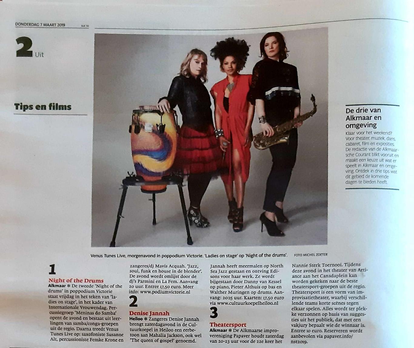 Press articles about Venus Tunes Live in Alkmaar 08-03-2019