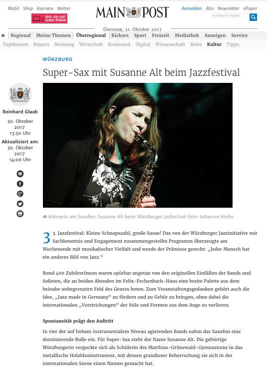 Review: Super Sax mit Susanne Alt beim Jazzfestival (Mainpost)