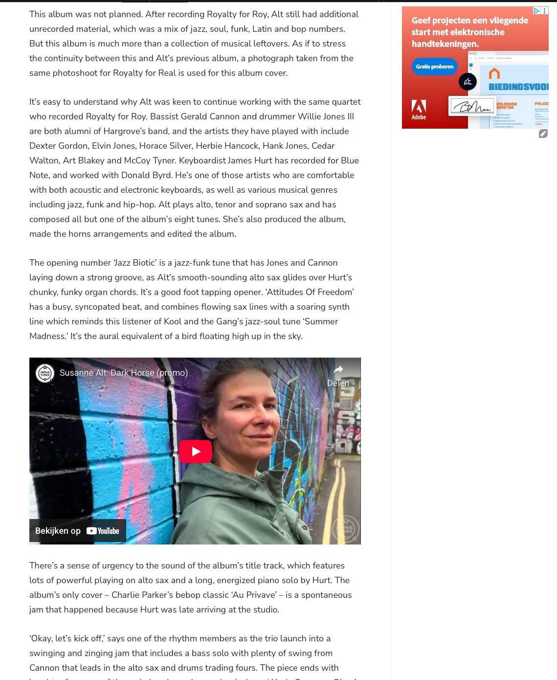 Amsterdam-based saxophonist Susanne Alt releases her 7th studio album. Recorded in New York with the same session members as her previous album Royalty for Real, the music is rooted in natural, groove-oriented compositions.
