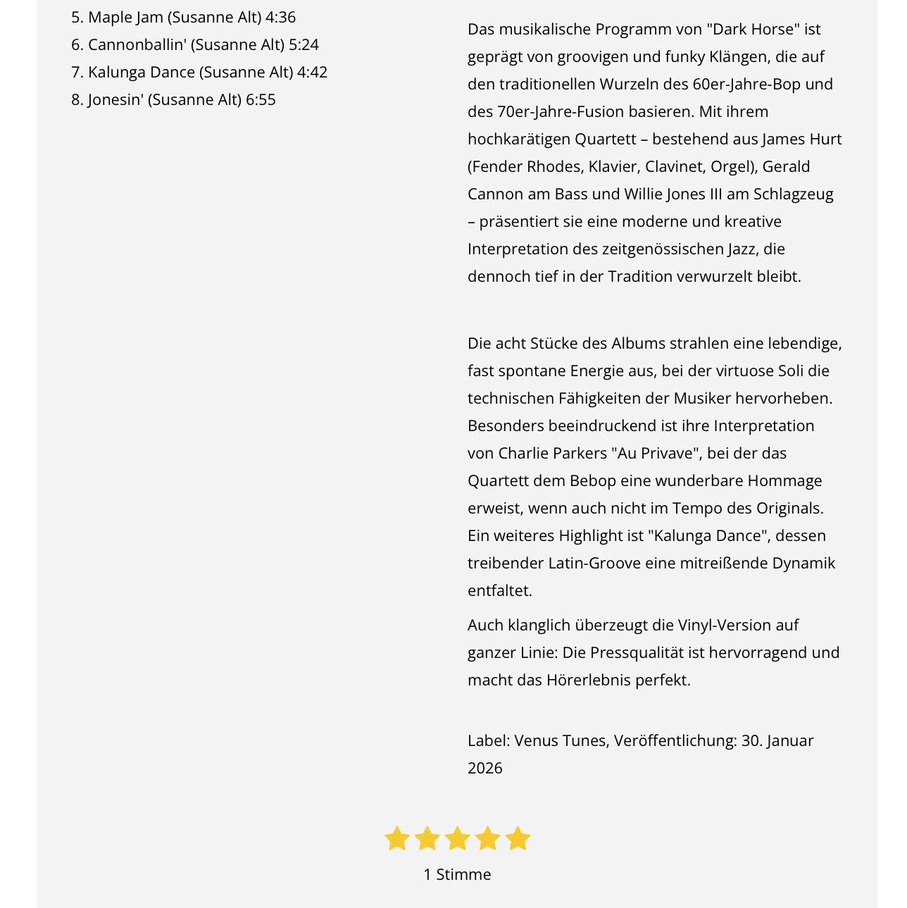 The vinyl version also impresses in terms of sound: The pressing quality is excellent and makes the listening experience perfect.