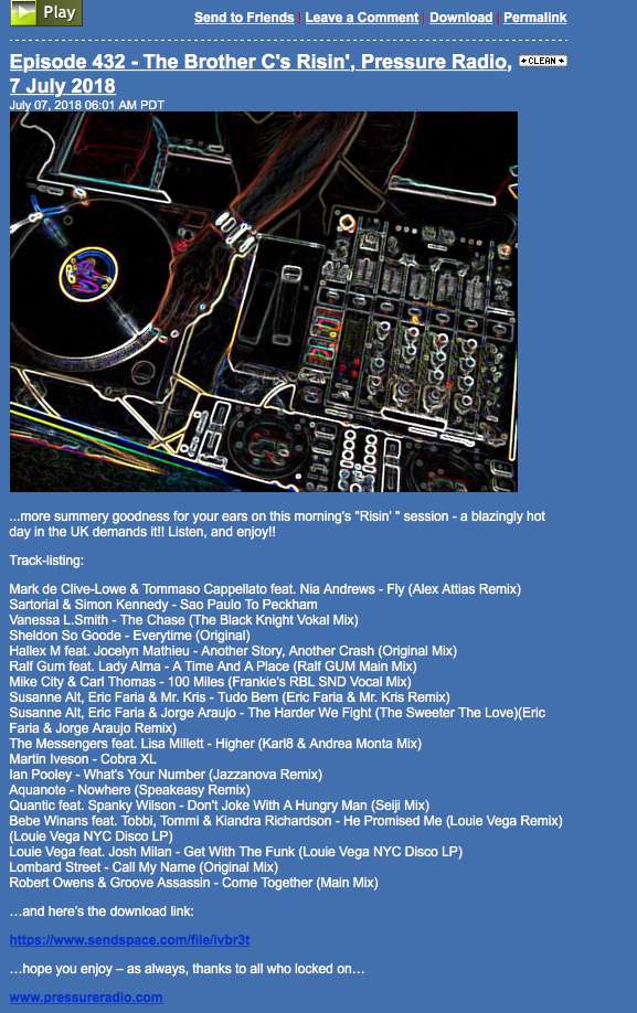 Pressure Radio called Risin' where he presents the latest releases.. He's been doing this since 436 episodes : 53 = more than 8 years..